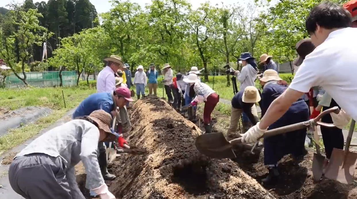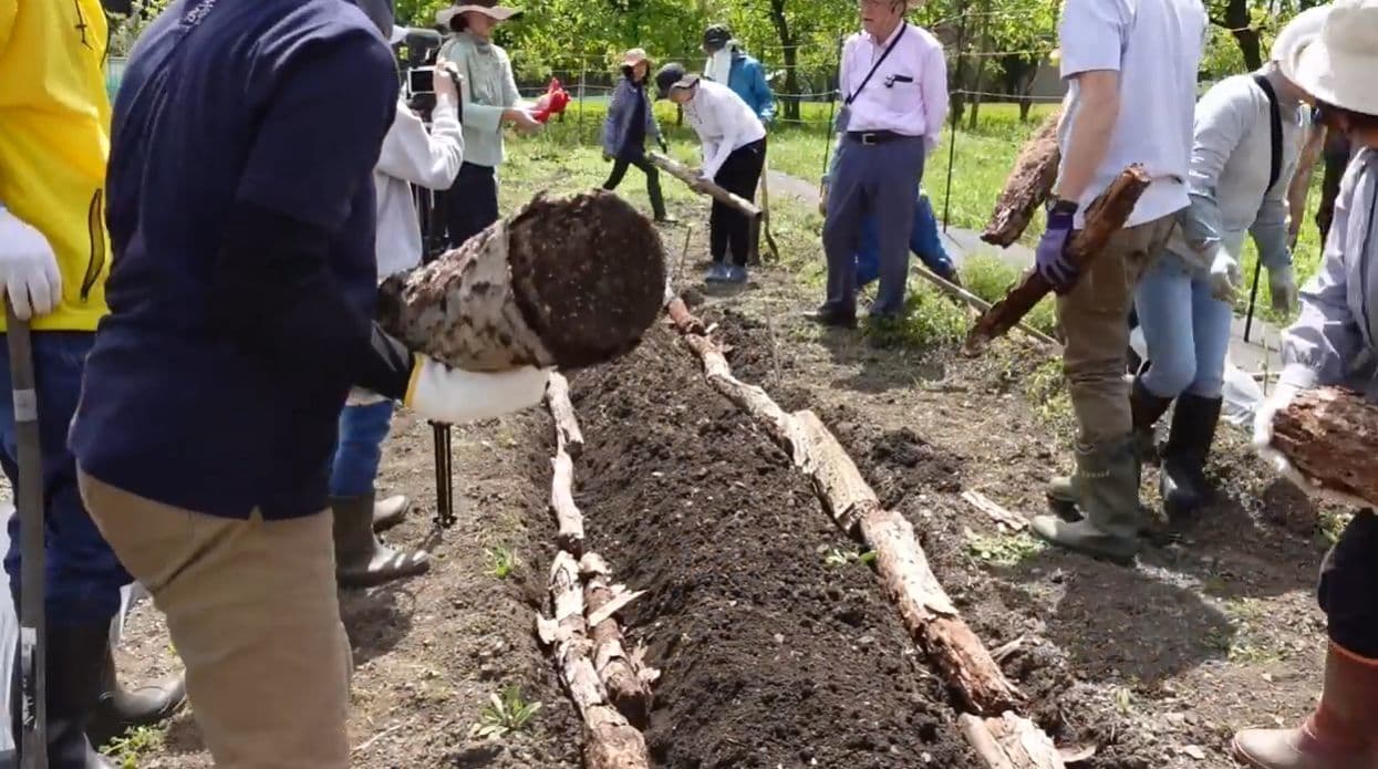 しかも、通常の有機的栽培の耕種基準にある堆肥や肥料を使わずに、雑木の幹や枝、雑草や稲わら、作物の残渣(ざんさ)、食品廃棄物などを圃場(田畑)に直接伏せ込むことで、従来なら厄介なゴミとして扱われていたものを有益活用でき、それが自然環境への負荷軽減を目指す持続可能な農業のかたちとなり得ます。